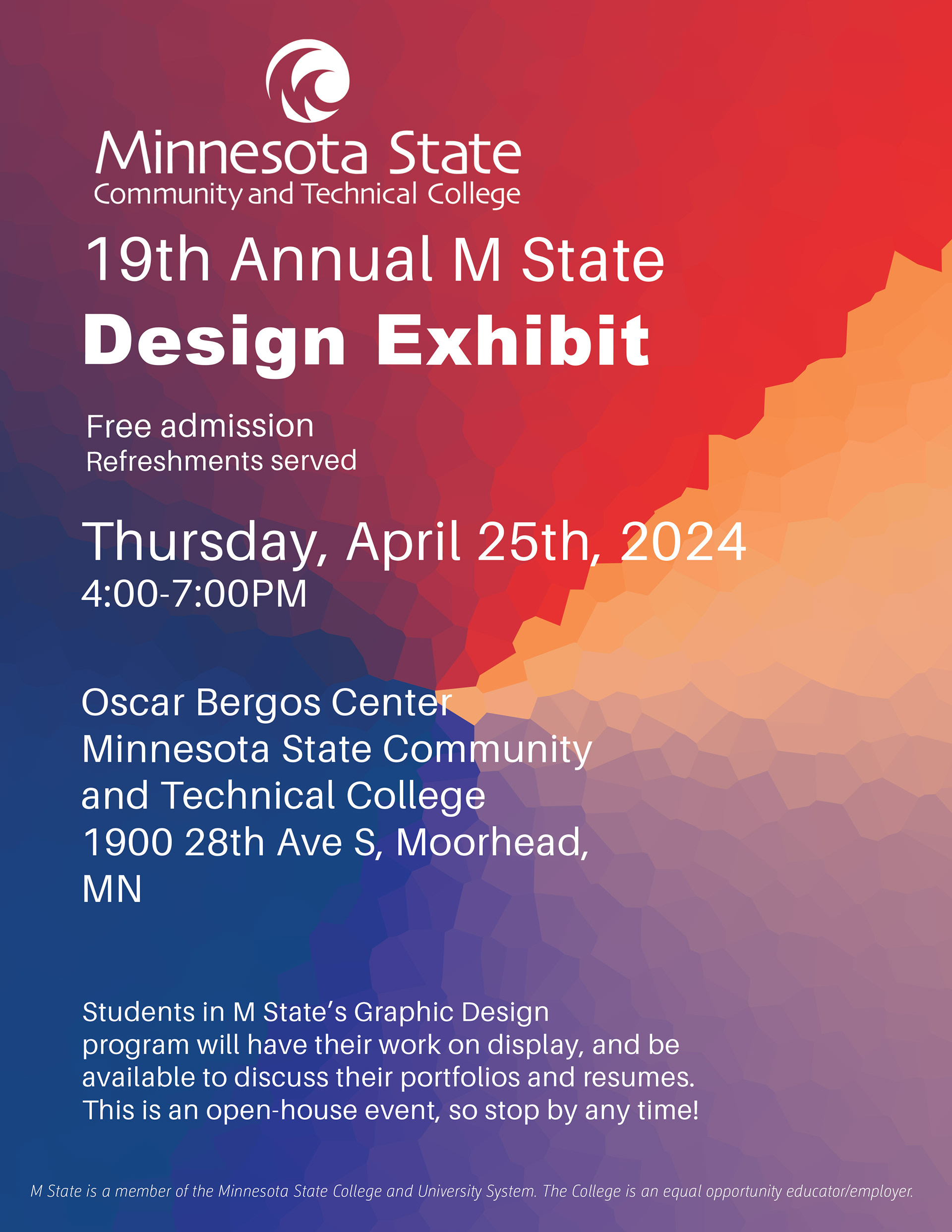 A poster for MState Design Exhibit. poster with gradient background with effects and with white typography